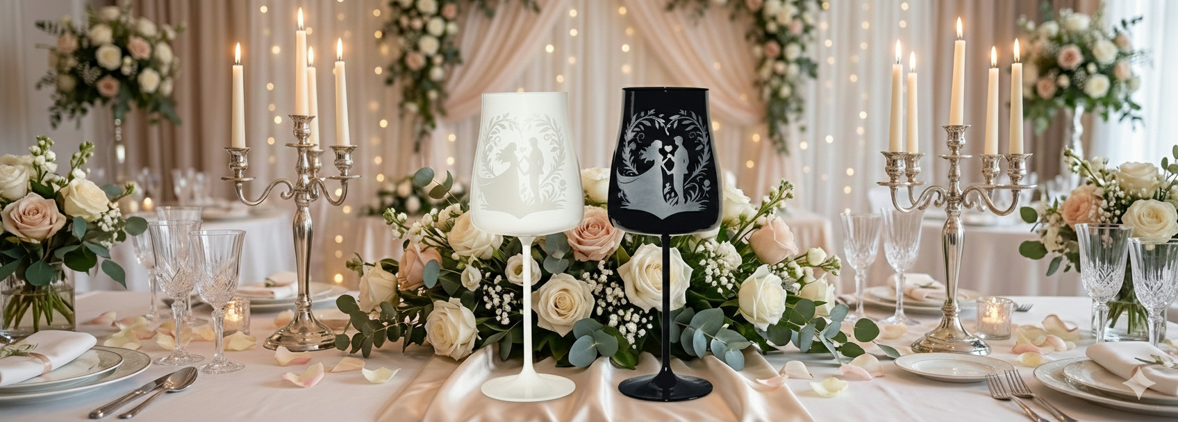 Diese Hochzeitsgläser bestechen durch ihr romantisches und zeitloses Design. Jedes Glas ziert ein großes Herz in der Mitte, das ein Gefühl von Liebe und Zuneigung symbolisiert. Innerhalb jedes Herzens befinden sich drei kleine, glänzende Steine, die an Perlen erinnern und dem Design einen Hauch von Eleganz und Feierlichkeit verleihen.Die Gläser haben von Teil matte Look der geschickt kontrastiert mit dem klaren Glas, was das Motiv des Herzens besonders hervorhebt und für eine ansprechende Optik sorgt. Die Stiele und Füße der Gläser sind in einem matten Weißton gehalten, der das Gesamtbild stimmig ergänzt.Insgesamt bieten diese Hochzeitsgläser eine perfekte Mischung aus Romantik und Modernität und eignen sich ideal, um auf einer Hochzeitsfeierlichkeit angestoßen zu werden, sowie als Erinnerungsstücke für das Brautpaar.Lieferumfangzwei Hochzeitsgläser mit Gravurinklusive Namen + Datum (auf der Rückseite)inklusive Geschenkbox mit SatinHinweis zur PersonalisierungKeine Sorge, falls die Namen in der Vorschau über das Glas hinausragen – dank der runden Form des Glases passen sich die Gravuren harmonisch an und umschmeicheln das Glas, sodass beide Namen vollständig und stilvoll zur Geltung kommen. Falls wir doch schwierigkeiten haben sollten, melden wir uns auf jeden Fall bei Dir.