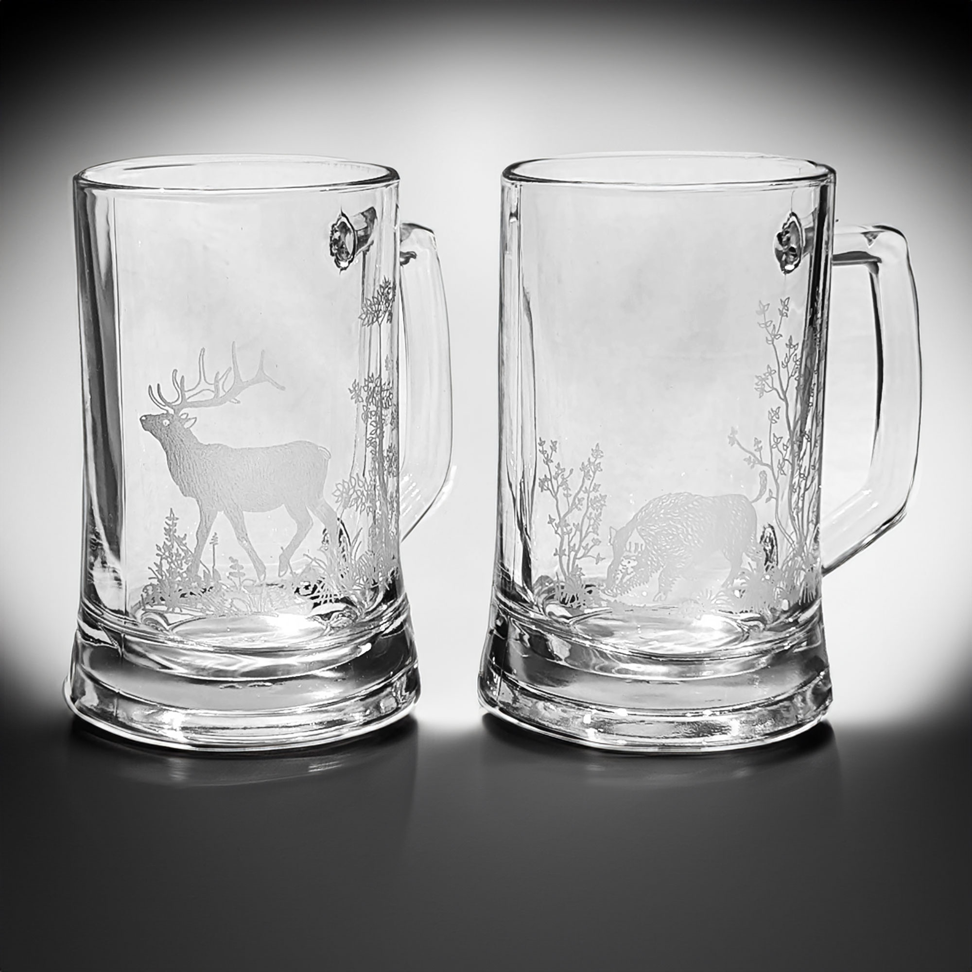 2-er Ser Biergläser mit Gravur Hirsch und Wildschwein /Pub/
