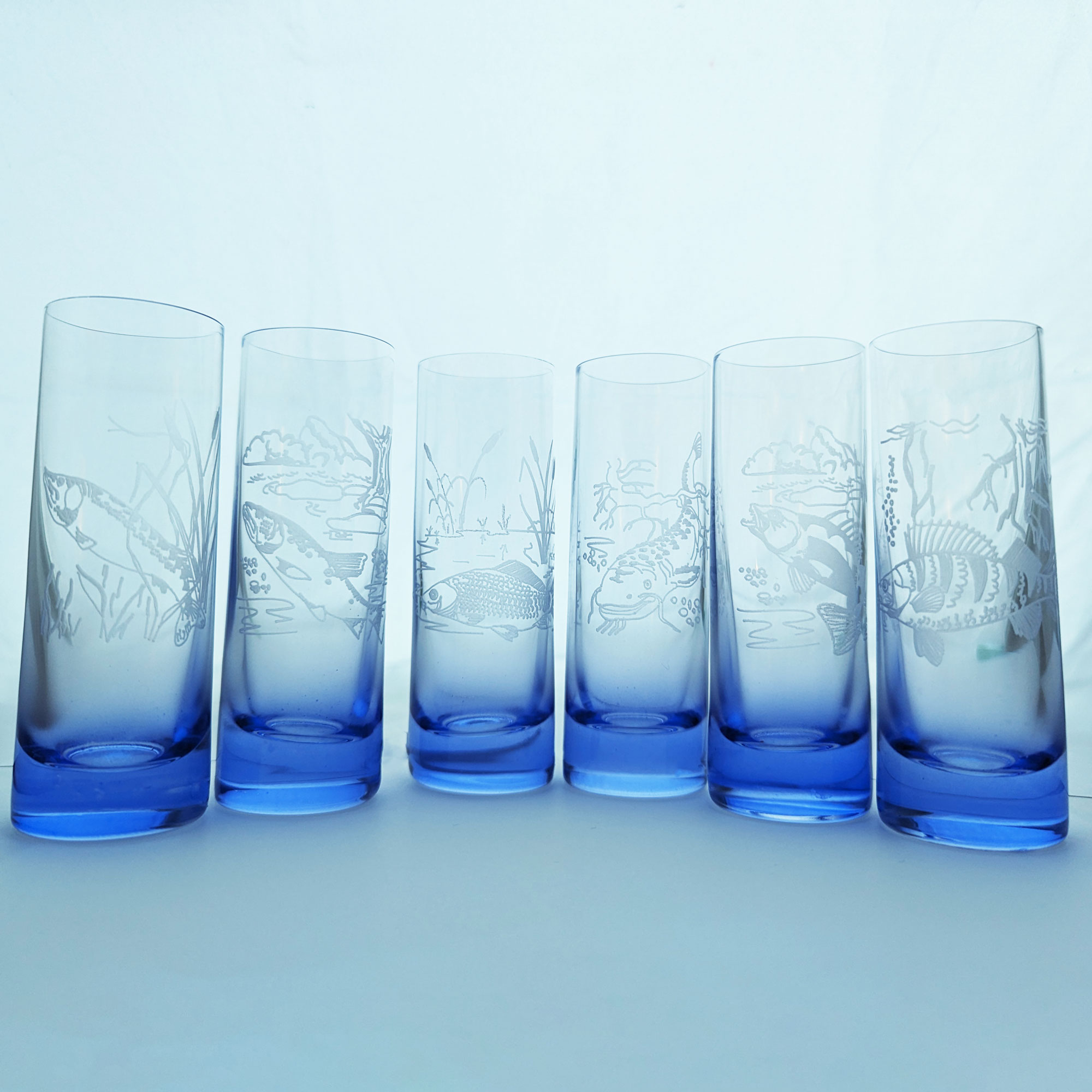 6 Schnapsgläser Fische 50 ml blau