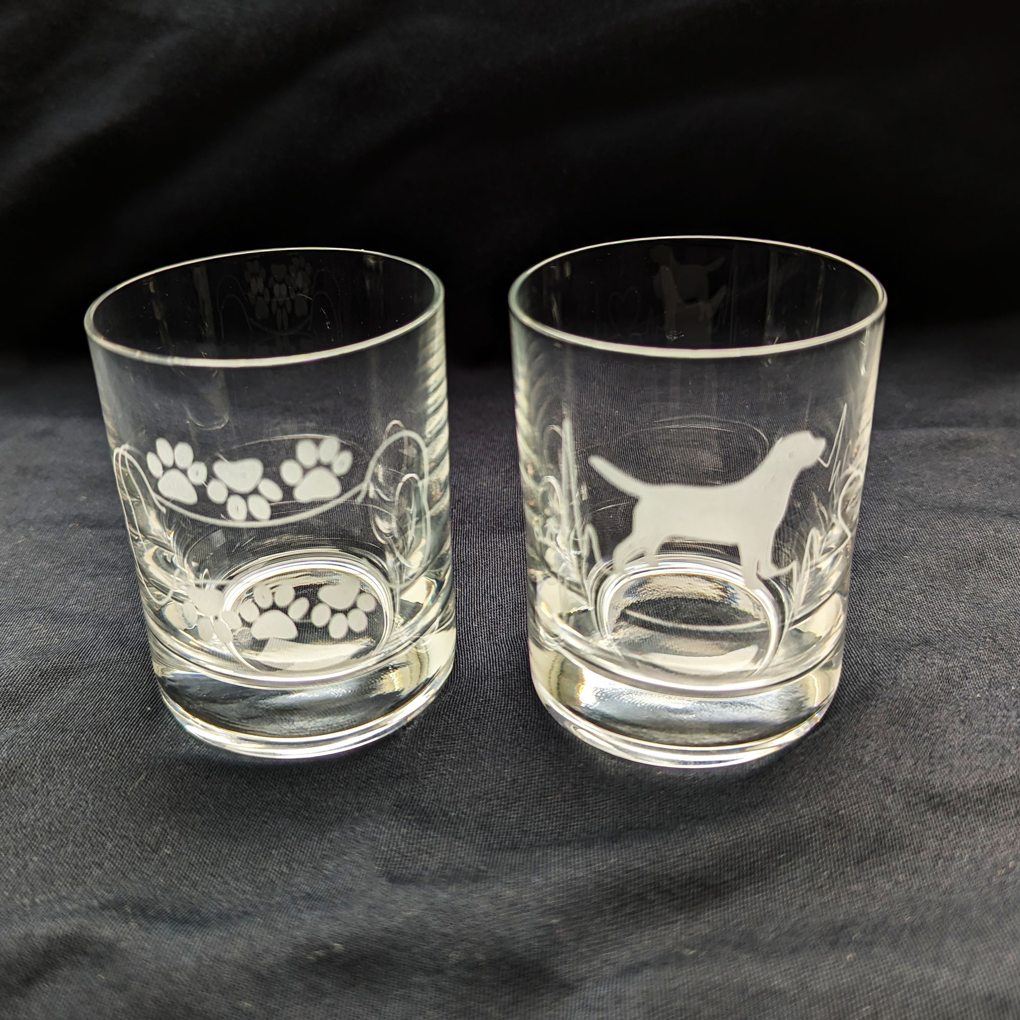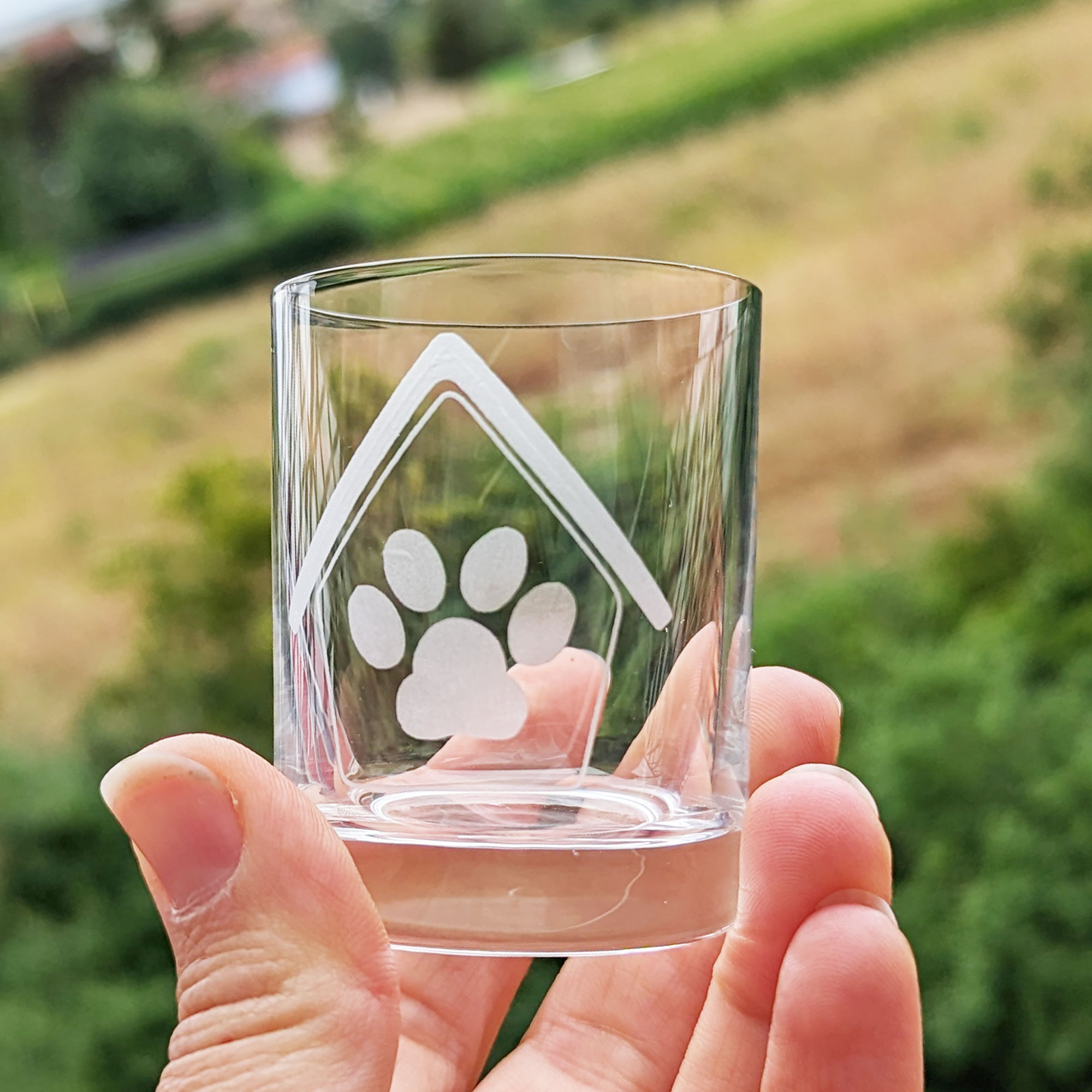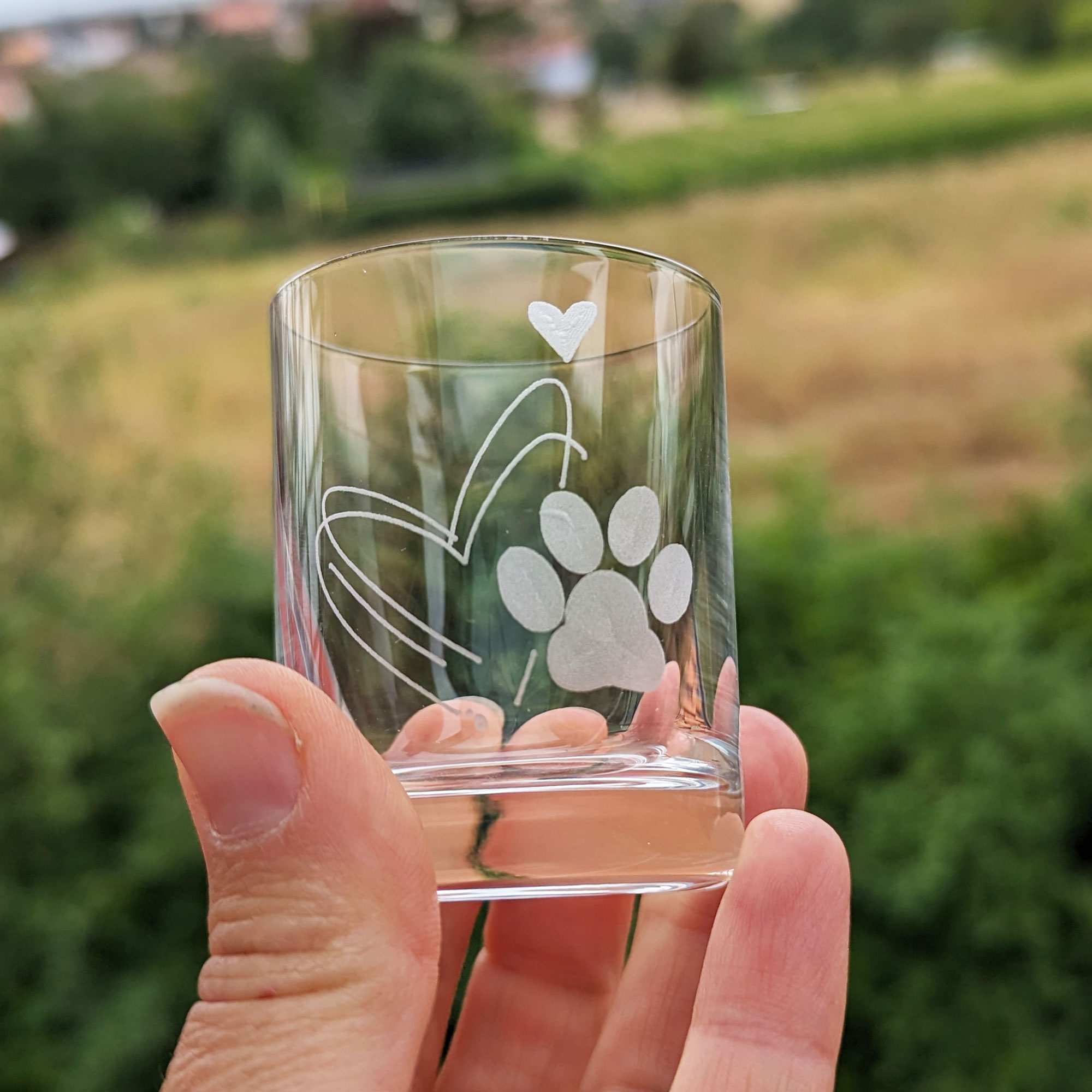 - Schnapsgläser mit gravierten Hundemotiven