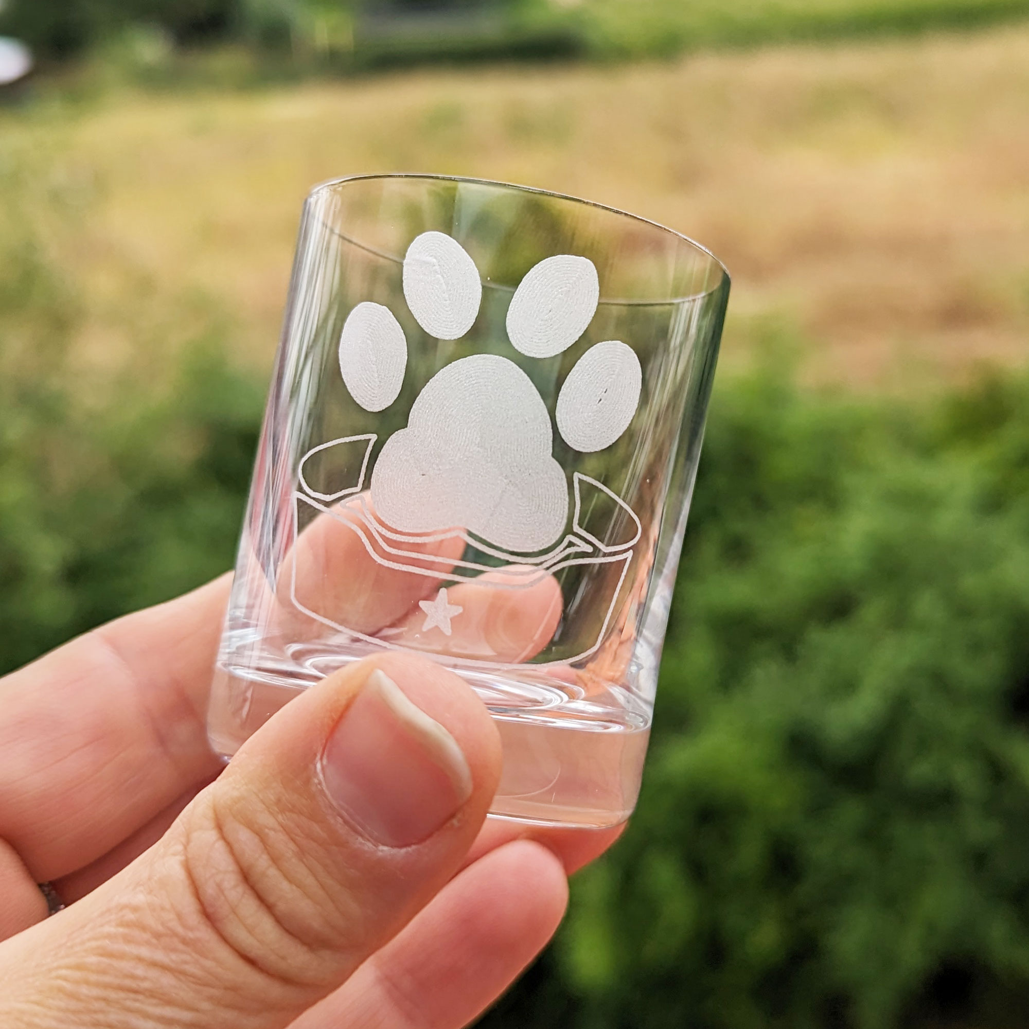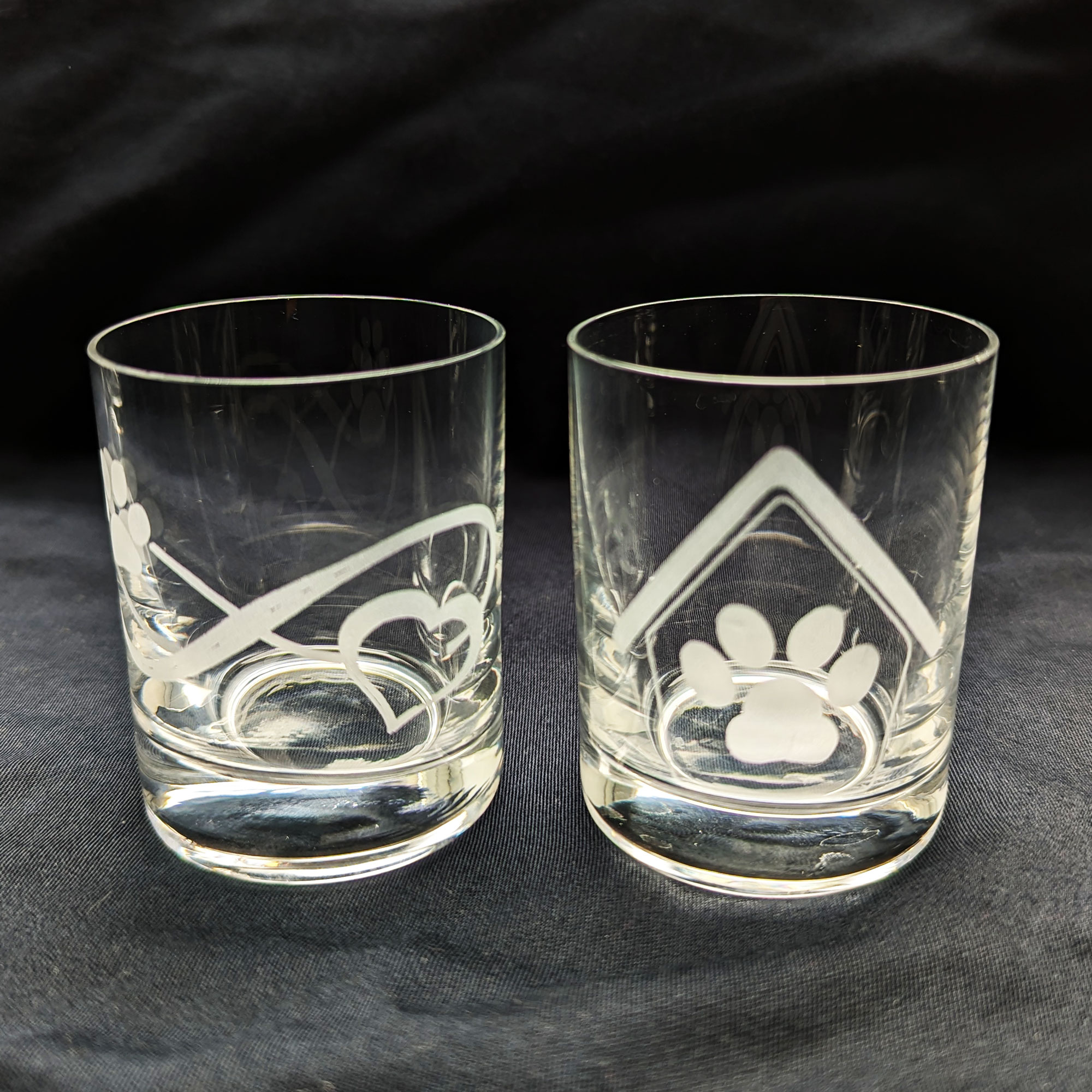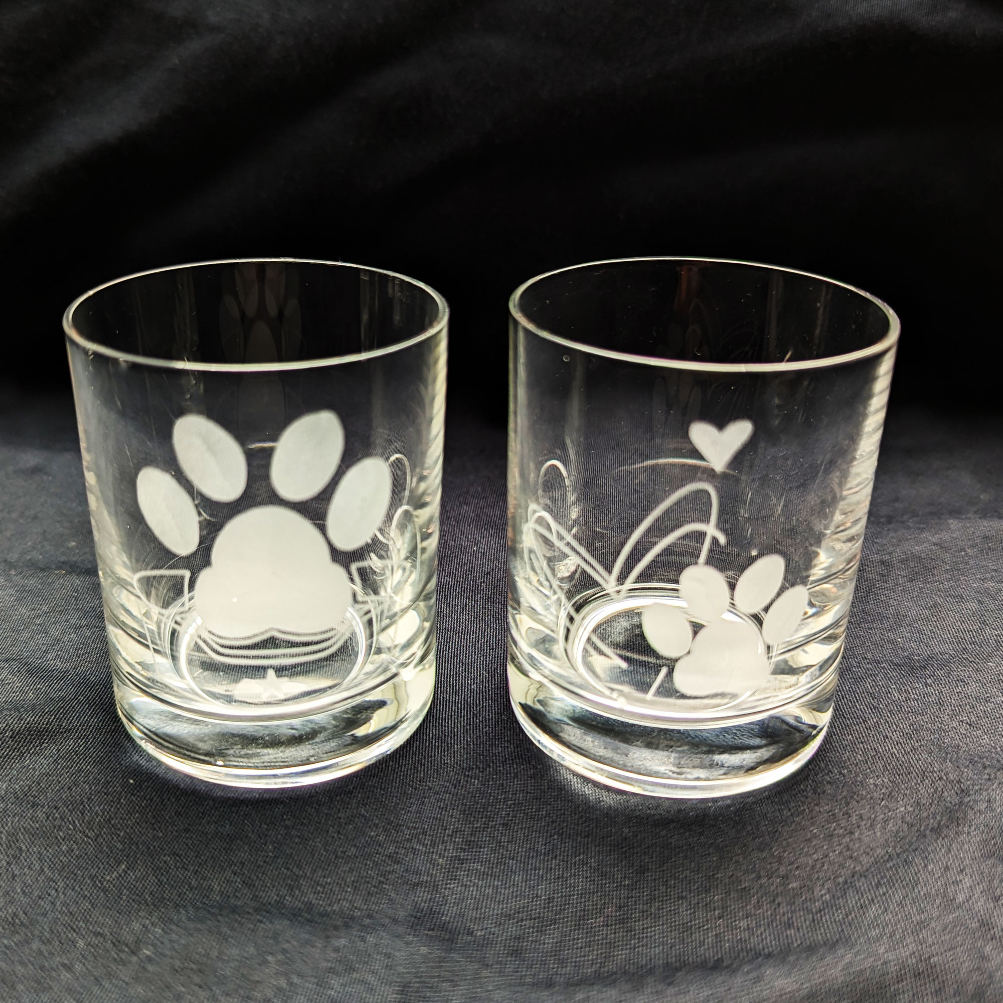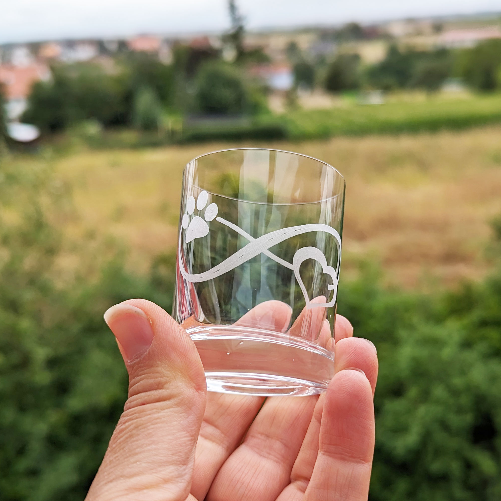 - Schnapsgläser mit gravierten Hundemotiven