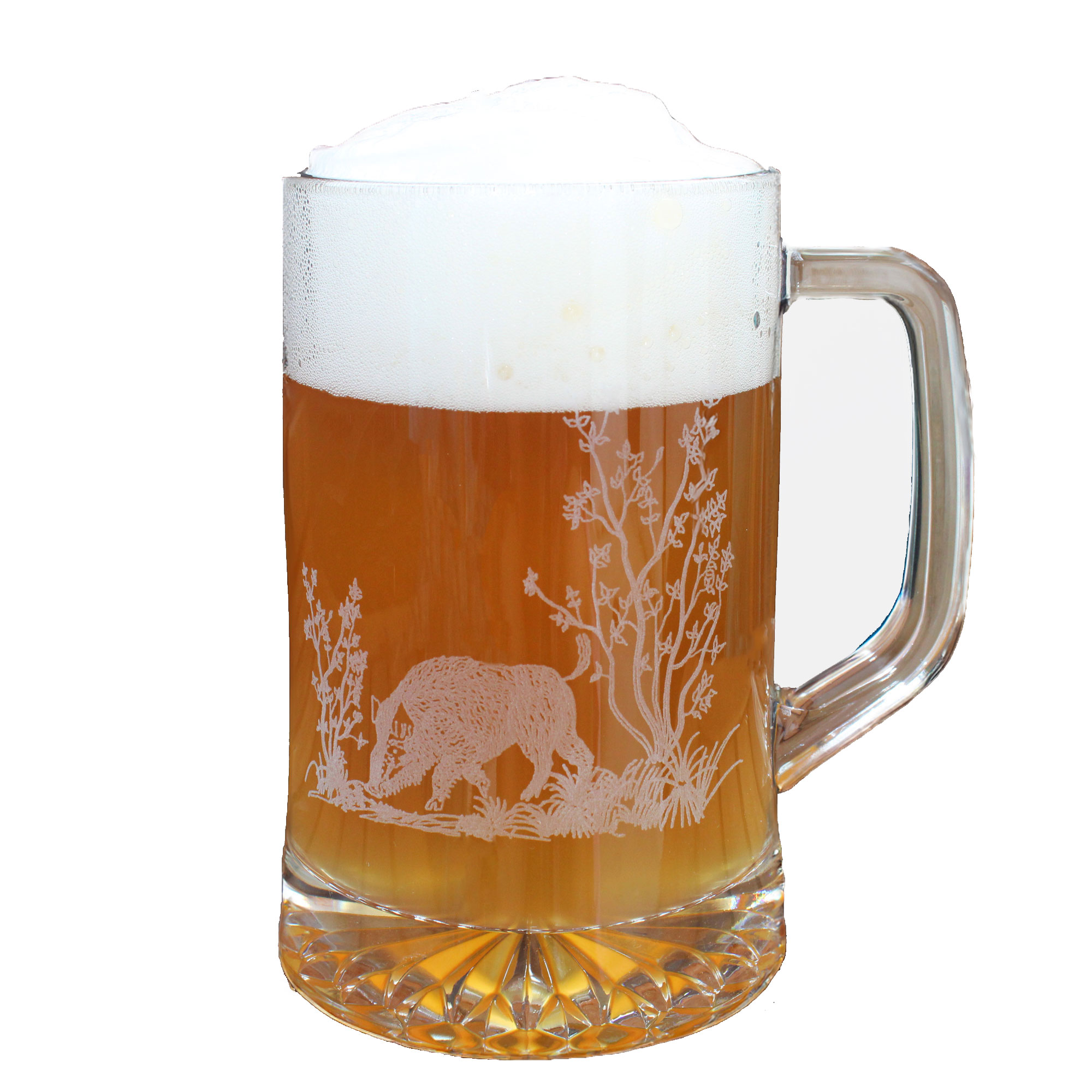 Dieses Bierglas besitzt eine Gravur eines Hirsches. Es sieht nicht nur beim Genuss deines Lieblingsgetränks wunderbar aus, sondern macht sich auch als Dekoration perfekt in jeder Vitrine. Genieß dein Bier aus diesem Bierkrug, welcher perfekt in eine nette Jagdhütte oder das urige Ambiente einer süffigen Schenke passt.