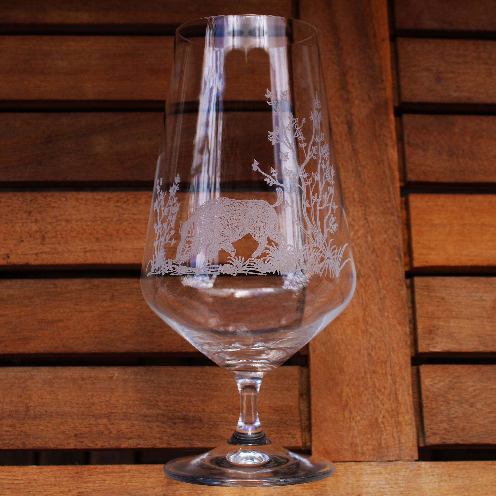 Bierglas mit Stiel Wildschwein Jagdmotiv