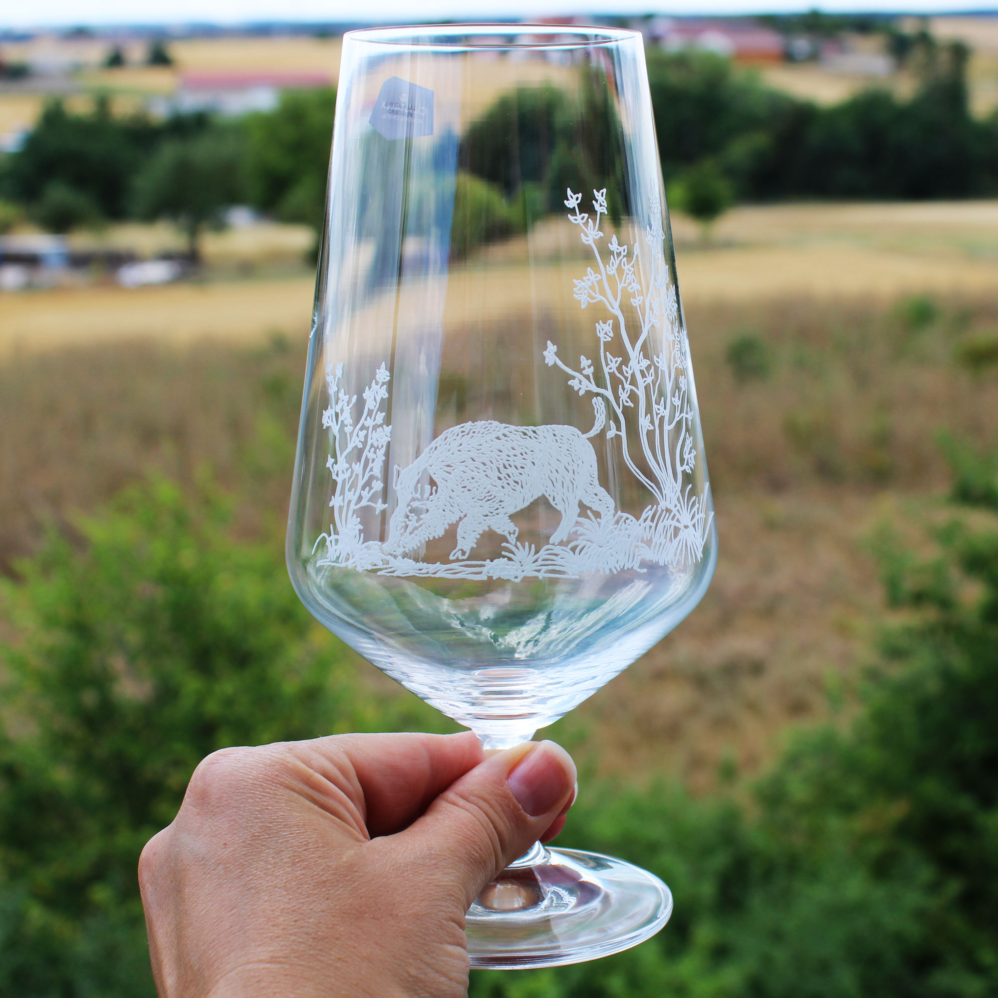 Produktinformationen "Bierglas mit Stiel Wildschwein Jagdmotiv"