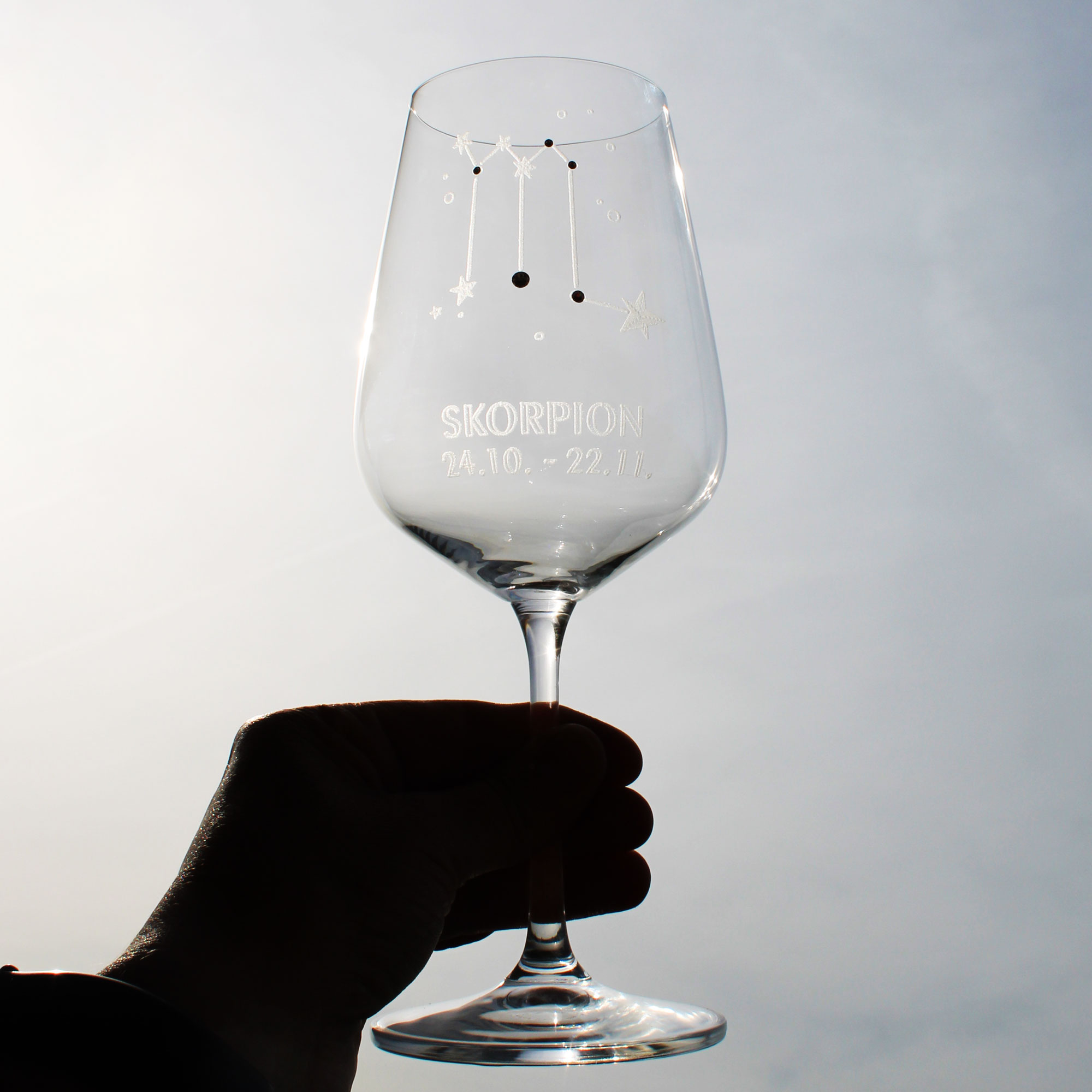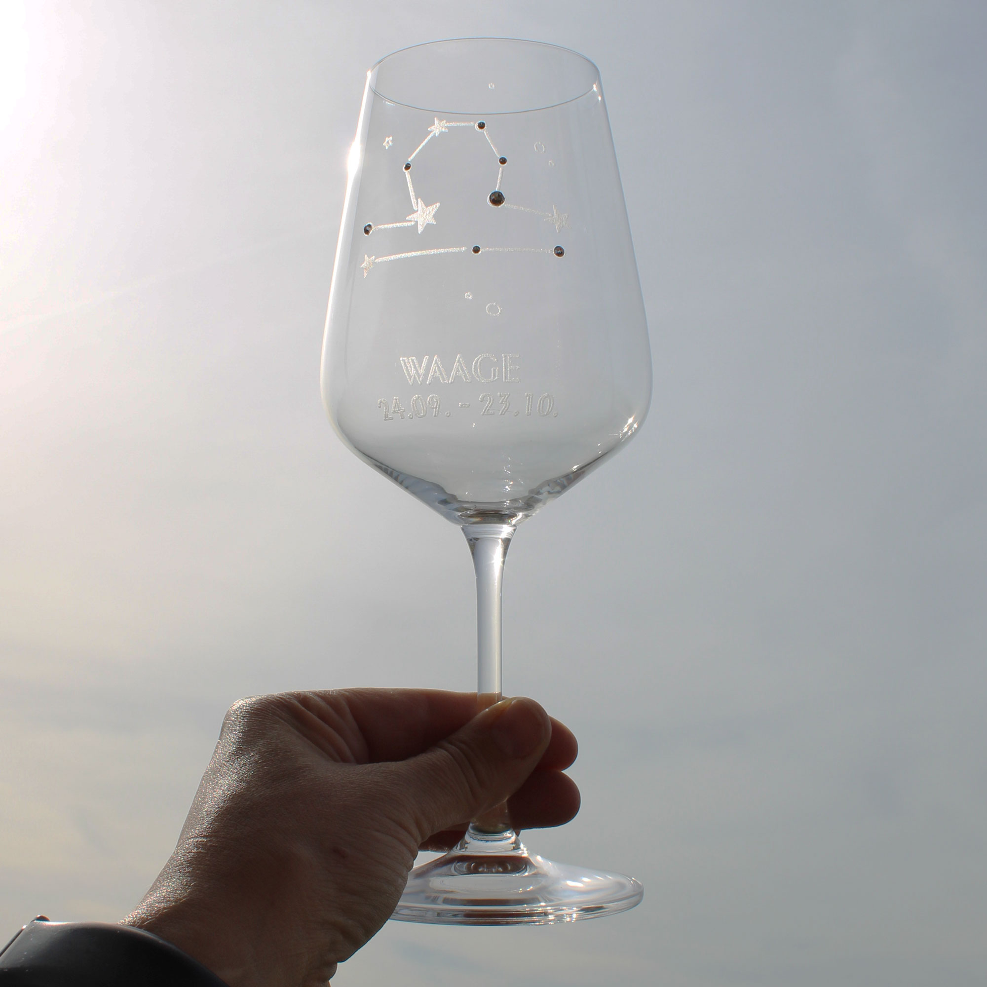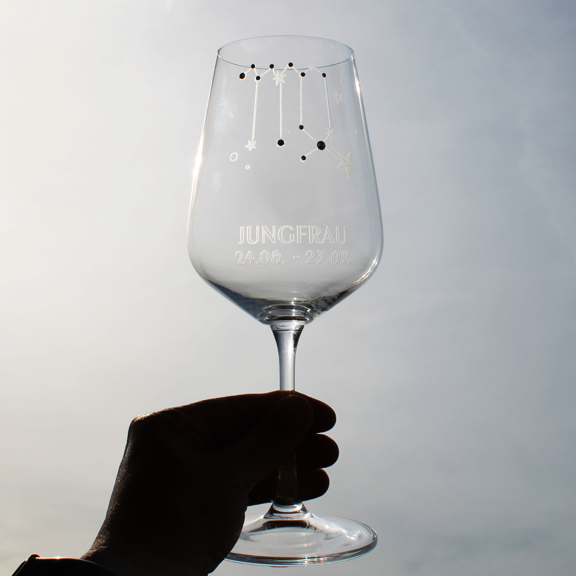 | Lieferumfang: | 1x graviertes Weinglas mit Sternzeichen Motiv nach Wahl |