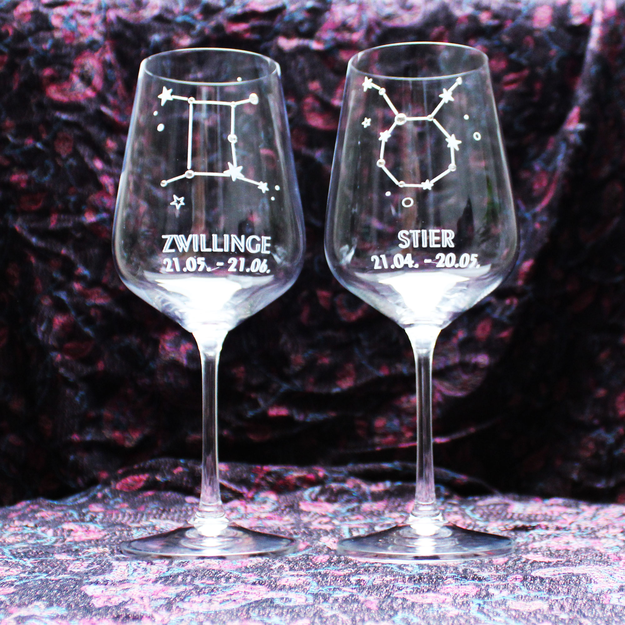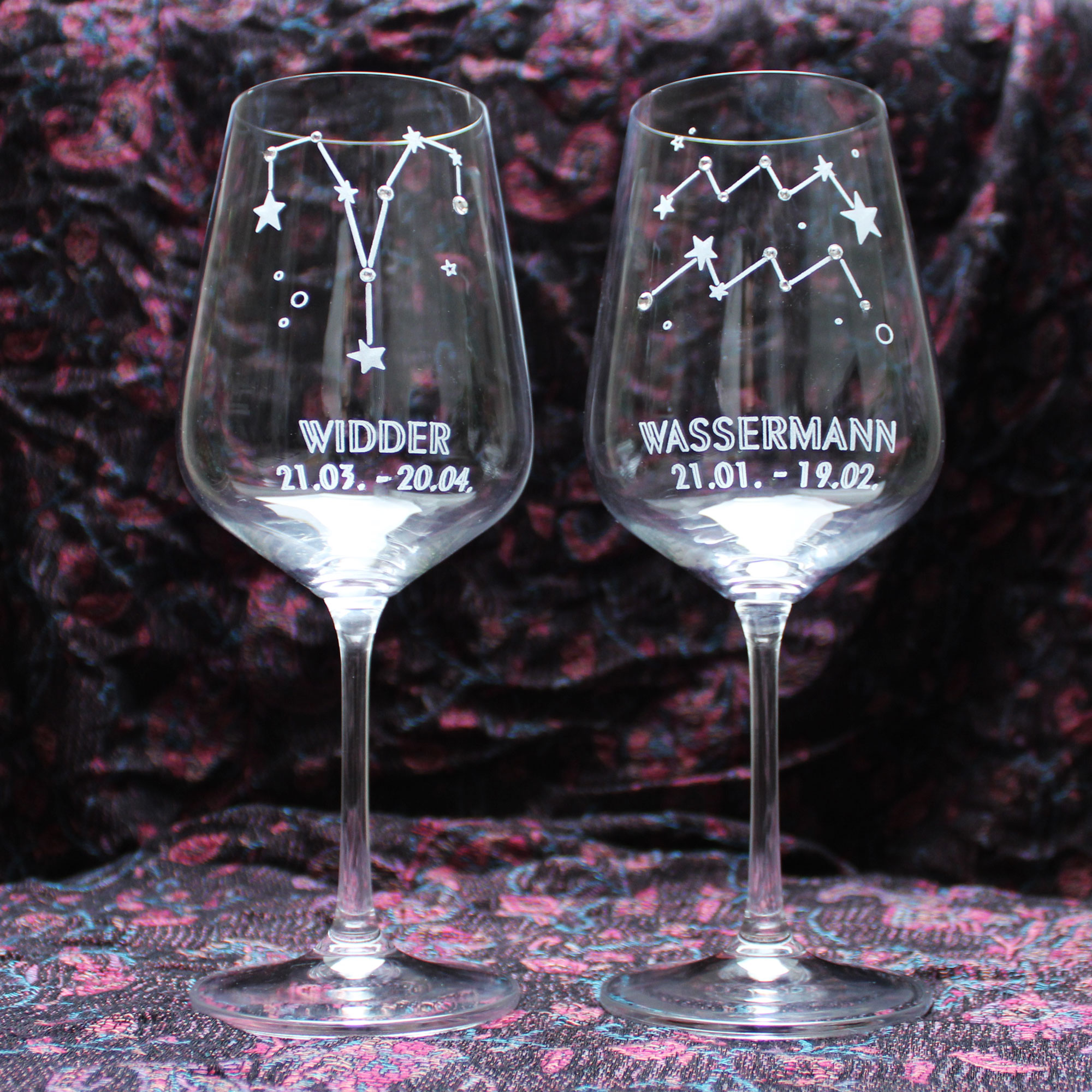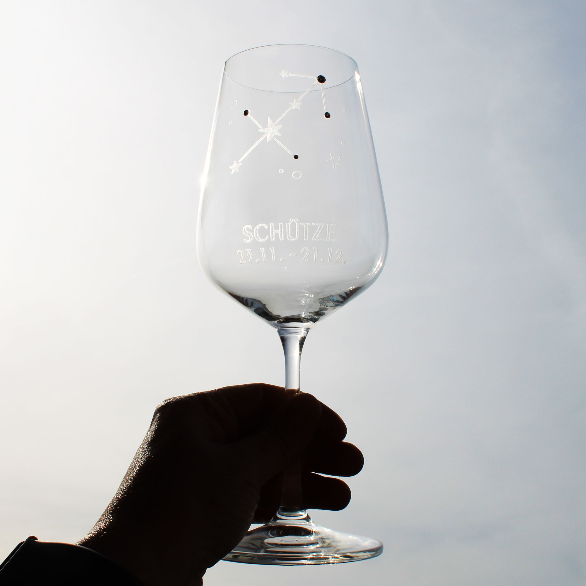 | Lieferumfang: | 1x graviertes Weinglas mit Sternzeichen Motiv nach Wahl |