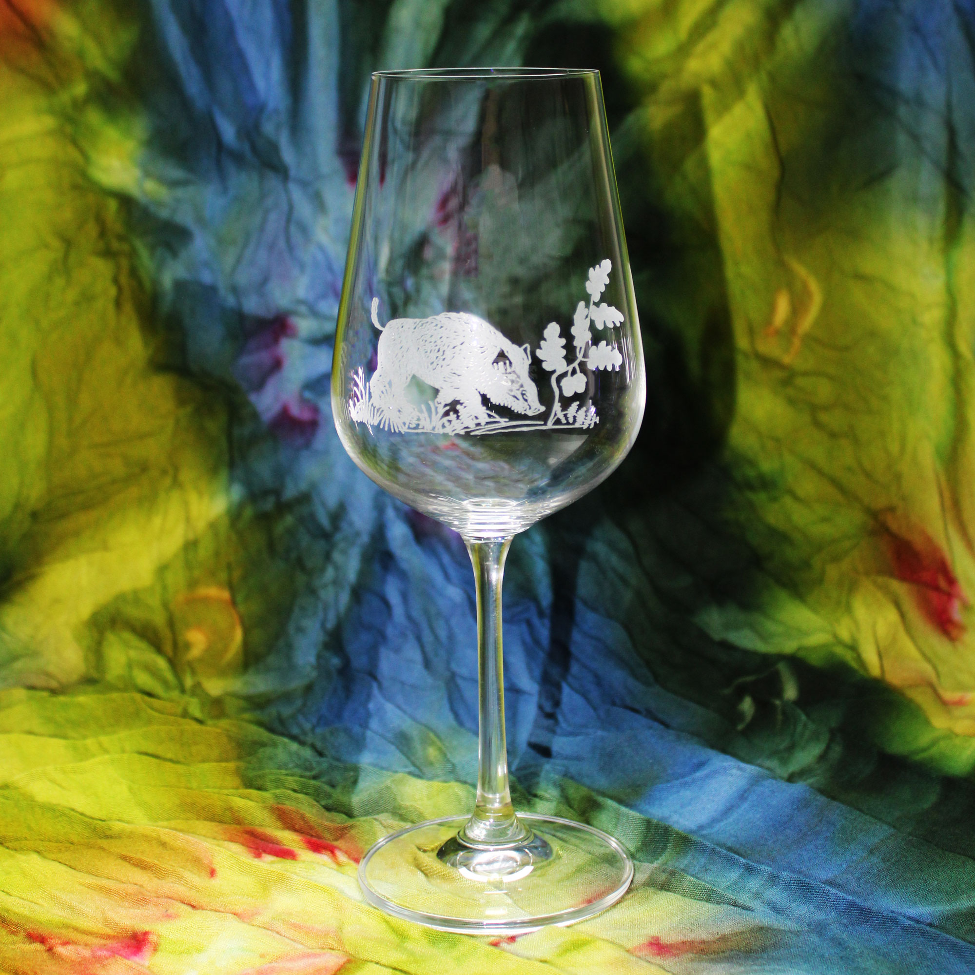 - Weinglas Gravur Jagdmotiv Wildschwein